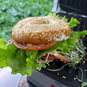 - Add microgreens to the bagel on top of the tomato, and again, personal preference will be key here.