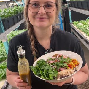 - Using our homemade Lime Vinaigrette lightly sprinkle over the bowl the desired amount. Light or Saucy…your choice!